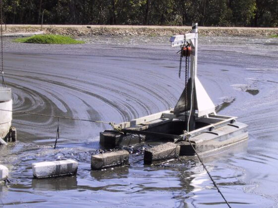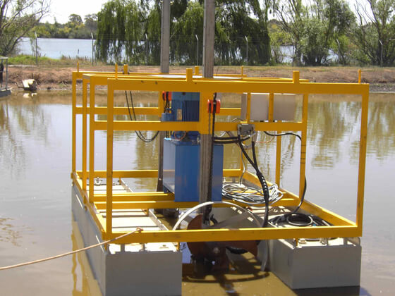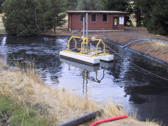 The pontoons can be fitted with either one or two 17.5kW submersible mixers. Electrical boxes are provided with a remote control so that mixers can be operated from shore.